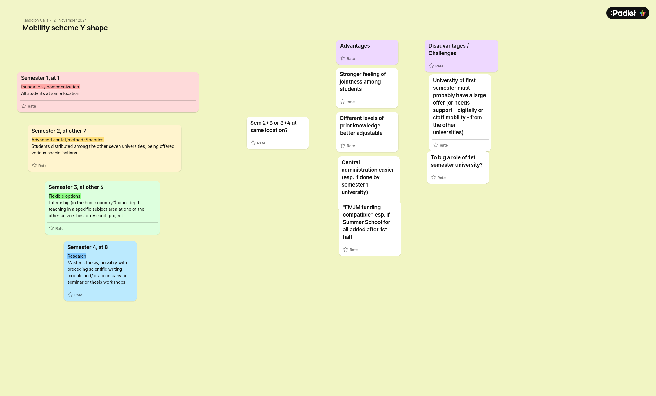 Well-structured mobility within a joint degree programme is important for success, but it also depends on legal requirements regarding participating partners' ability to award degrees. The mobility structure should be simple and transparent for students, too. If funding is planned, e.g. through Erasmus Mundus, these framework conditions should be taken into account. The following examples can provide an initial idea for a mobility scheme.